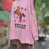 Pink coloured crew neck sweater featuring hand painted mermaid-riding-a-horse yeehaw print to front. Horse shoe print down each arm. Ribbed at neck and wrists. Brushed cotton texture to inside.