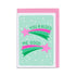 The greeting card measures 105 x 145mm when folded and is blank inside for a personal message. Risograph printed using soy-based inks onto 100% PCW recycled paper. Comes with a coloured C6 sized coloured envelope. Each card is packed in a 100% home compostable sleeve made from plant cellulose and sealed with a recyclable sticker made from 100% recycled paper and water soluble eco-friendly adhesive.