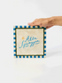 Sun, salt and stripes. The Superette Alla tile is a postcard from the beach, hand-painted on capiz shell with a buttery yellow wash and blue border. Whether you hang it solo or pair it with other tiles in the series, it's an instant escape. Translates directly as to the beach!