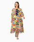 Unleash your inner fashionista with this Jaydon Midi Dress! Featuring a crew neckline and bow tied details at the front, this dress is perfect for any occasion. With 3/4 puffy sleeves and elastic cuffs, you'll feel comfortable and stylish all day long. Plus, it even has pockets for convenience and a fun bold print for a touch of personality. Made from soft and flowy rayon, you'll never want to take off this playful dress.