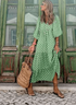 The perfect Christmas Day dress! Lightweight midaxi dress with green and red print on a white background. Tiered skirt and bowknot tie at neck