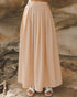Cream maxi skirt featuring solid waistband, rear zipper closure and belt loops. Plus front and back pleats for maximum twirling