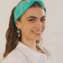 Aqua fabric knot headband with mint beaded detail