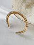 - Featuring embellishments hand stitched into a gold band.