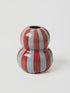 Bold stripes and rich contrast define the Fonda Burgundy Pale Blue Vase. With alternating hand-painted bands and a plump sculptural shape, it brings statement energy in a compact form.