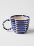 Our most substantial mug silhouette meets bold blue stripes in this commanding piece designed for those mornings that demand something more! Conceived in our Sydney studio and hand-finished in Vietnam, this earthenware vessel's generous proportions cradle coffee or soup with equal resolve a testament to thoughtful design and traditional craftsmanship.Holds 500ml.