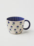 Delicate blue flowers bloom across the exterior of this natural earthenware mug, hand-painted with expressive brushwork by our Vietnamese craftspeople. Matched with indigo stripes on the interior and an additional sweet bloom waiting at the base of the mug as a final wink. Designed in our Sydney studio, this earthenware piece balances simple form with botanical detail perfect for those who find meaning in the smaller moments of their daily rituals.