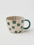 Green four leaf clover's encircle this mug, leading to an interior of thin black stripes and a tiny four-leaf clover and "Lucky Me" inscription on the base, that transforms each sip into a moment of gratitude. Designed in our Sydney studio and hand-finished in Vietnam, its emerald handle adds a flash of colour to your morning coffee ritual or afternoon tea pause.