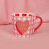 Our Love You Mug is a must-have for those looking for a sweet and thoughtful present for a loved one. Featuring a blush pink gingham pattern against a white background and illustrated retro pink and red heart with a gold 'Love You' message.
