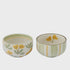 Small ceramic bowl with green and yellow floral or stripe print