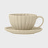 The Latina Cup with Saucer by Bloomingville is a beautiful set consisting of two pieces. The set is made of stoneware and glazed in a deep green tone. The wavy edge adds both texture and elegance to the design, while the variations in the glaze's color ensure that each set is unique.