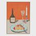 Vibrant orange tablescape painting in natural wood frame 40x55cm