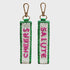 Fully beaded key chain with 'CHEERS" on one side and 'SALUTE' on the other. Gold hardware