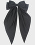 The Morgan & Taylor Cara Hair Bow in black is a timeless and chic style, easily adding a touch of elegance to an everyday or an event look. The classic style features two, layered bows, and finishing with soft, floaty ribbon tails. The bow can be easily styled to several hairstyles, via the barrette clip.