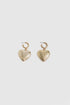 The Vintage Heart Charm Hoops in Gold are drop earrings featuring a vintage-inspired heart lockets with engraved detailing. Finished with a stud-back closure and crafted from plated metal.