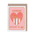 The greeting card measures 105 x 145mm when folded and is blank inside for a personal message. Risograph printed using soy-based inks onto 100% PCW recycled paper. Comes with a coloured C6 sized coloured envelope. Each card is packed in a 100% home compostable sleeve made from plant cellulose and sealed with a recyclable sticker made from 100% recycled paper and water soluble eco-friendly adhesive.