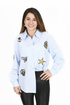 A classic stripe with a playful twist, the Julia Stripe Shirt is an effortless statement piece you’ll love styling year-round. Featuring a soft blue pinstripe base, this shirt is elevated with beautifully detailed embroidered patches scattered throughout for a fun, personality-filled finish.