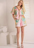 Pink shorts with elastic waist , brown & mustard exclusive retro print design intricately placed trims with vintage look florals flowing down side seams,