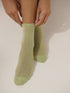 Lightweight crew sock with ankle frill and mesh pointelle knit.