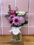 Beautiful floral arrangement in a keepsake jar vase featuring a range of different blooms.