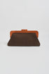 The Jessie Textured Weave Timber Frame Clutch in Chocolate features a textured woven finish with a timber frame, optional chain strap, and fits most smartphones.