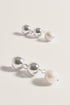 Pearl Drop Metal Ball Earrings - Silver