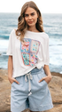 Boxy, slightly cropped soft-touch cotton tee with ribbed neckline and cuff detail.