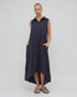 A summer staple for everyone's wardrobe. A loose fitting sleeveless dress with a shirt front and exaggerated back panel for maximum floatiness. Features gold buttons and shirt collar.