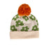 A super cute merino blend beanie with a jaquard flower knit design and fun contrast pom pom on top.
